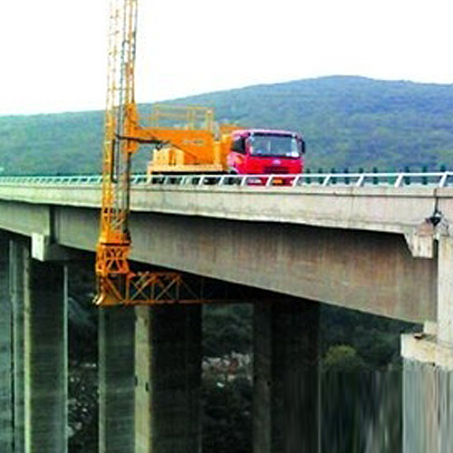 主要性能及特点桥梁检测作业车工作时只占一个车道,不影响其它车辆通行。桥梁检测作业车底盘采用知名品牌,承载能力大,动力强劲,性能优越,稳定性好。桥梁检测作业车采用先进的变幅机构和平台伸缩机构,副车架和回转底座采用独特的箱型结构形式,以确保产品工作平稳、安全。采用液压驱动自行走系统,提高产品作业效率。配以备用汽油机系统和发电机系统,为检测提供方便。