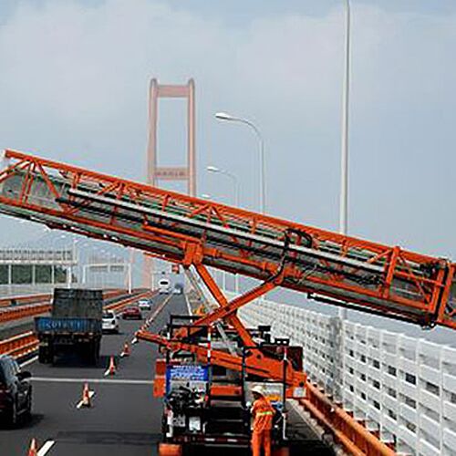 桥梁检测车广泛适用于大中型桥梁的病害维修和预防性检查作业,如对大桥下面各结构进行全面的检查、维修与维护(油漆、喷砂、安装、拆卸),包括对大桥主梁梁底裂纹检测和全桥支座检查养护,也可以安装和维护桥下管道和电缆。